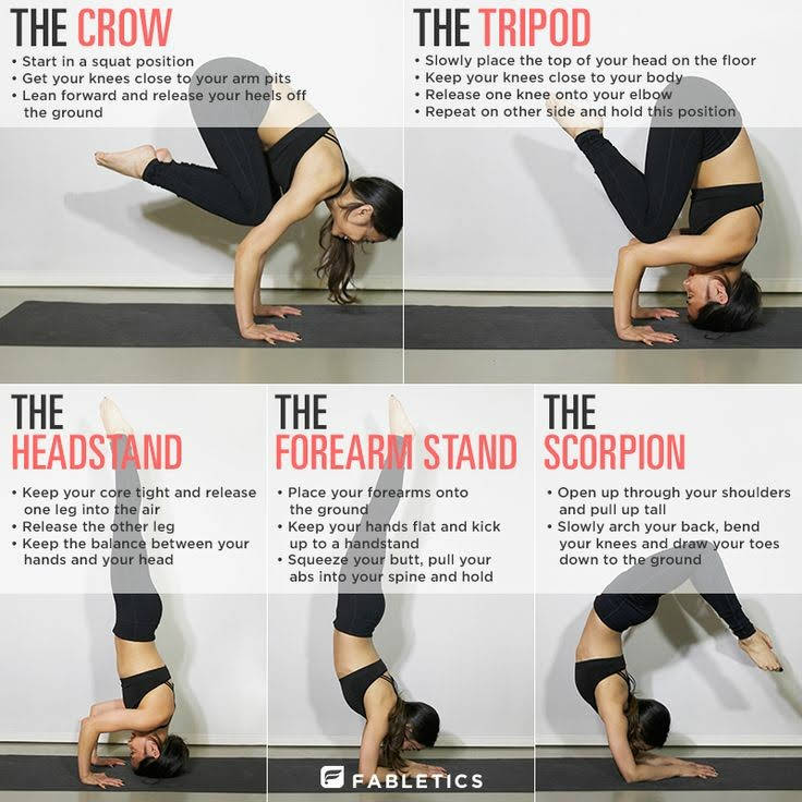 Hand- Stands. Yoga Postures… head stand, forearm stand, Scorpion